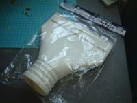 で、キットそのままでは手にもてないのでポリキャップをポリパテで固定中!あんまり持ってないポリパーツ、やっと見つけて組んでみるがこのポリキャップはどうもフィギュア用らしく肌色でちょっとイヤンな感じ。