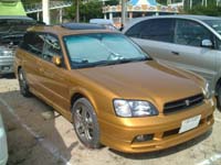今回参加してガンダム好きな親子さんと知り合えてこの方が乗ってた車が金色のレガシィ。まるでクアトロの百式ですやんって感じでよく見ると百って・・・。