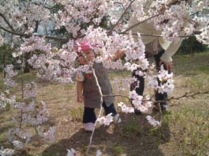 娘も満開のサクラにご満悦。