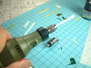 リューターの先に綿棒シャキーン!